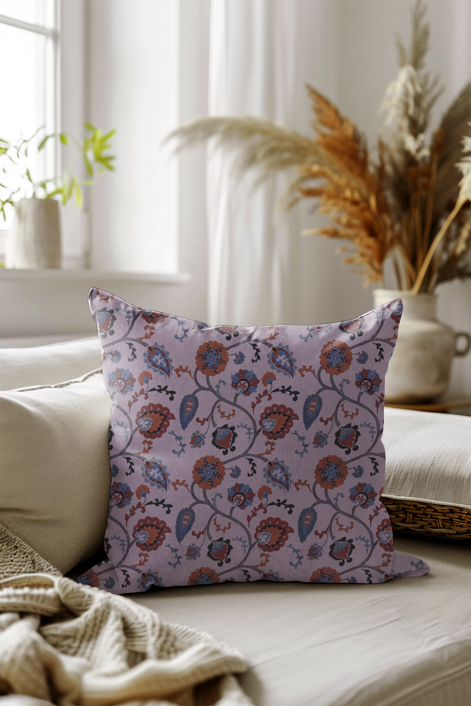 Mustard and blue Floral and Leaves Pattern Velvet readymade cushion cover