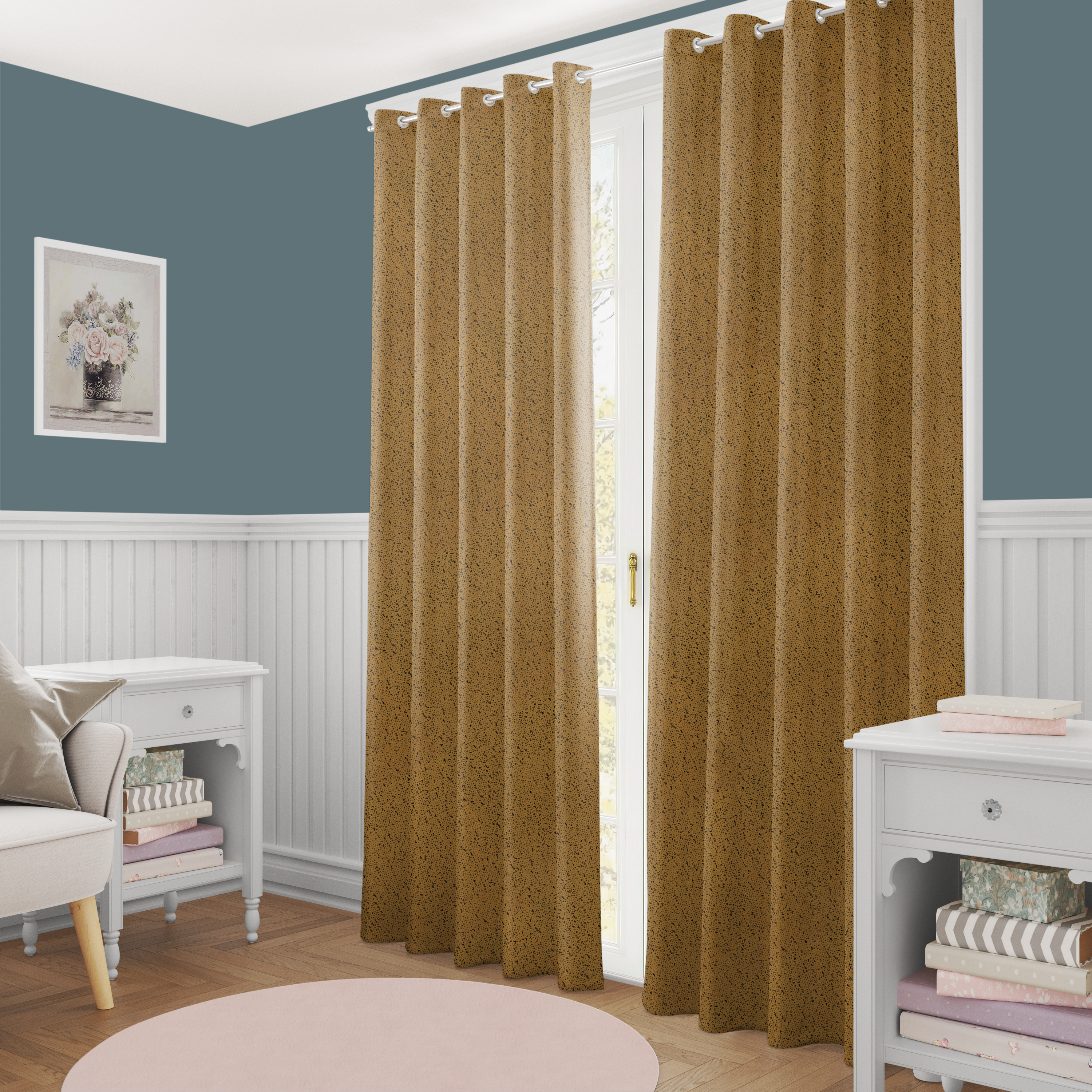 Mustard Yellow Colour Textured Suede Readymade Curtain