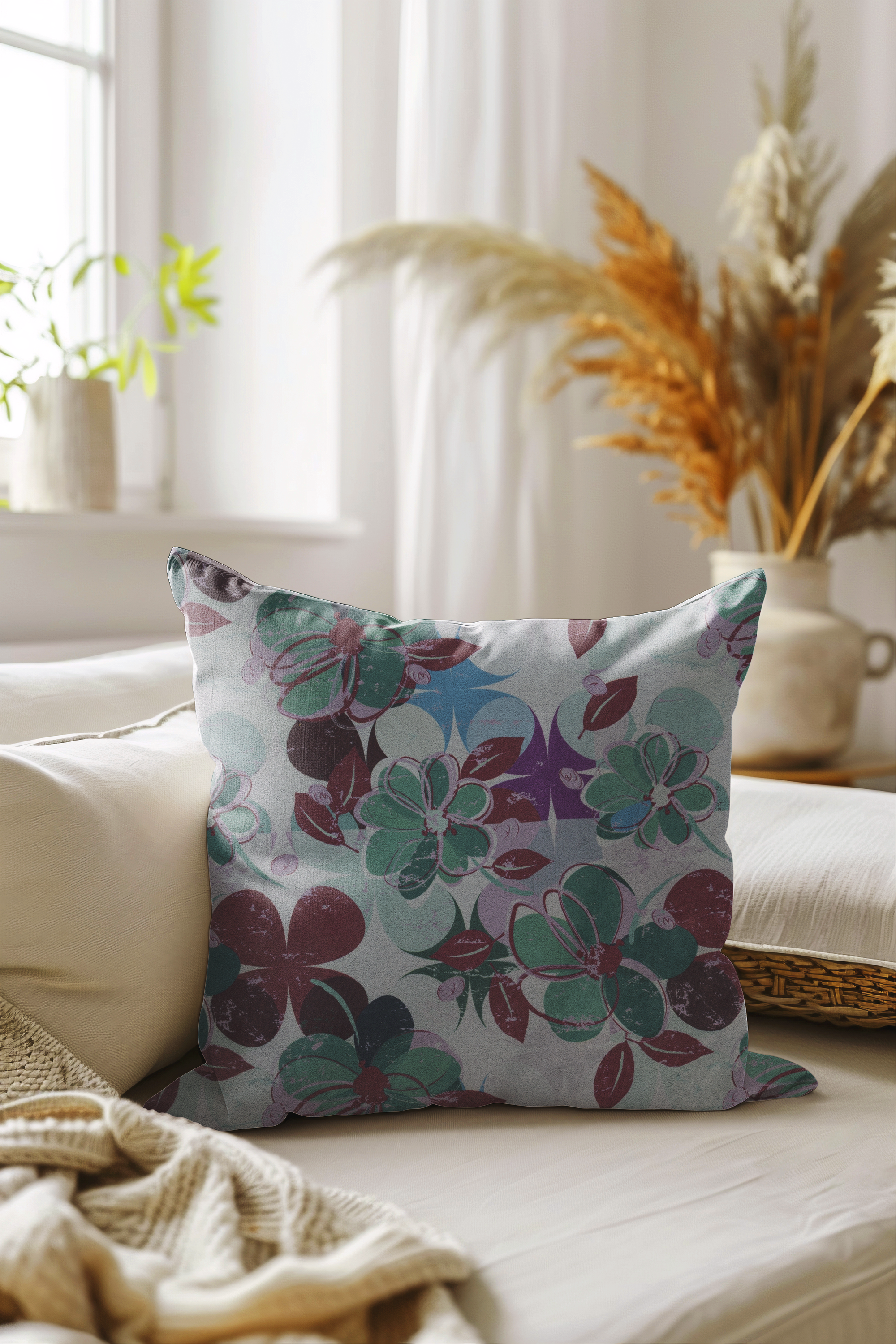 Maroon and Green Colour Floral and Leaves Pattern readymade cushion cover