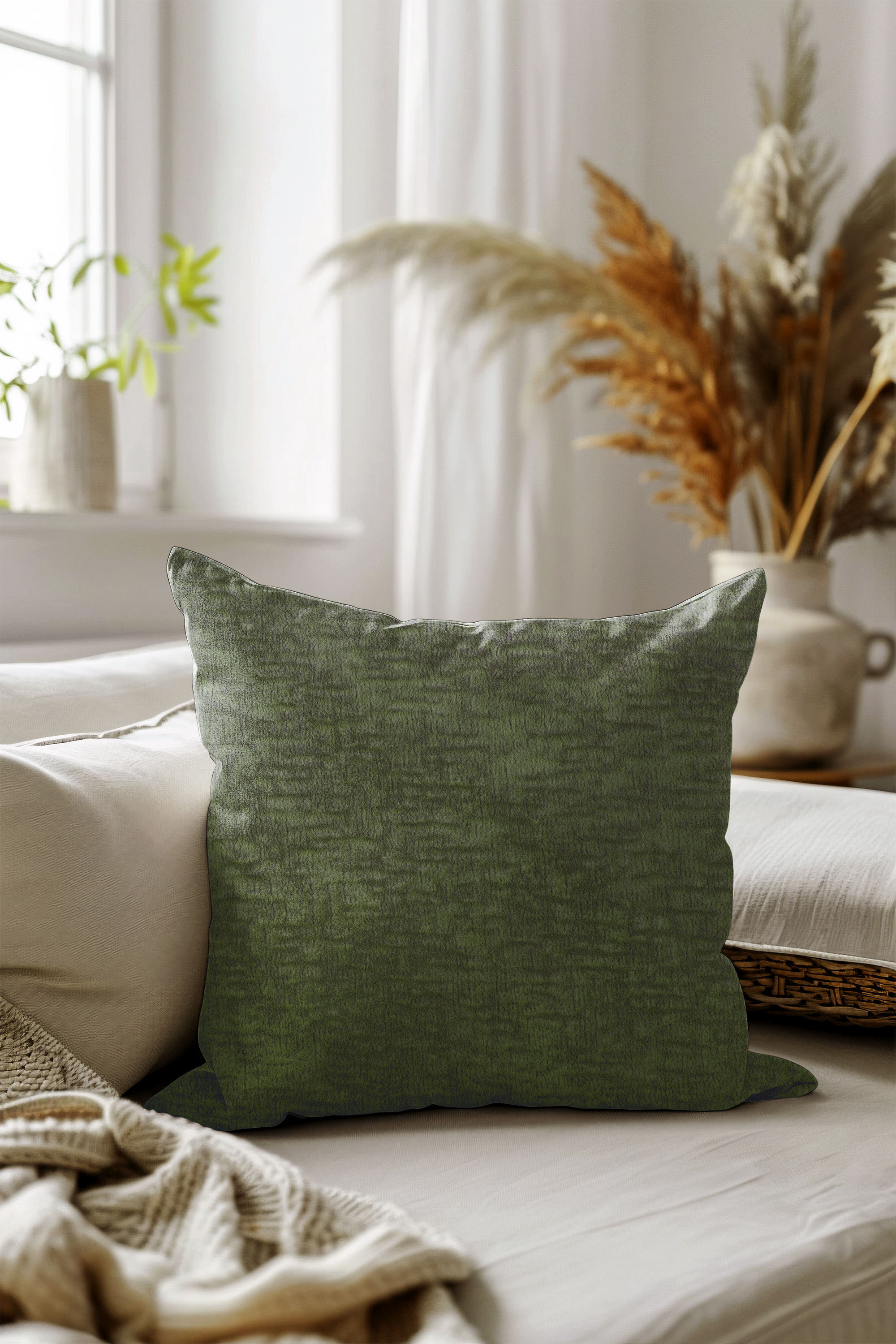 Olive Green Colour Textured Velvet Flock readymade cushion cover