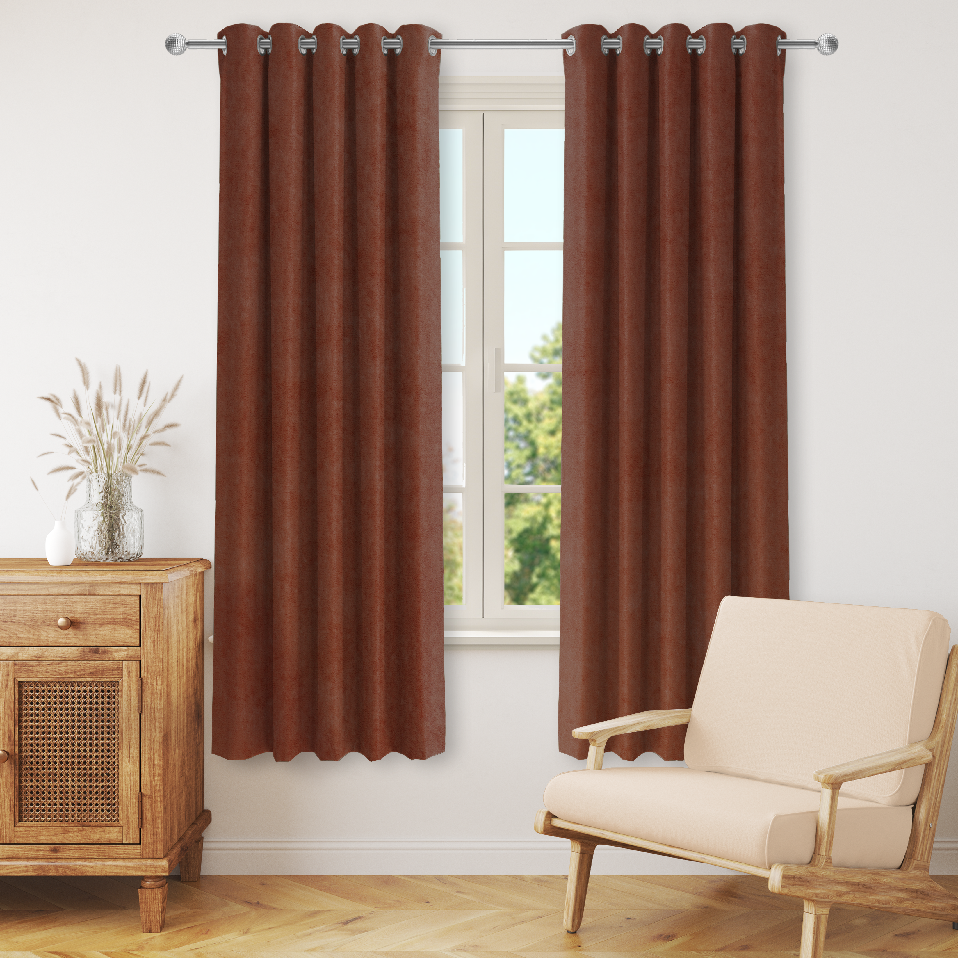 Cinnamon Brown Colour Plain Velvet Flock Easy Clean Readymade Curtain