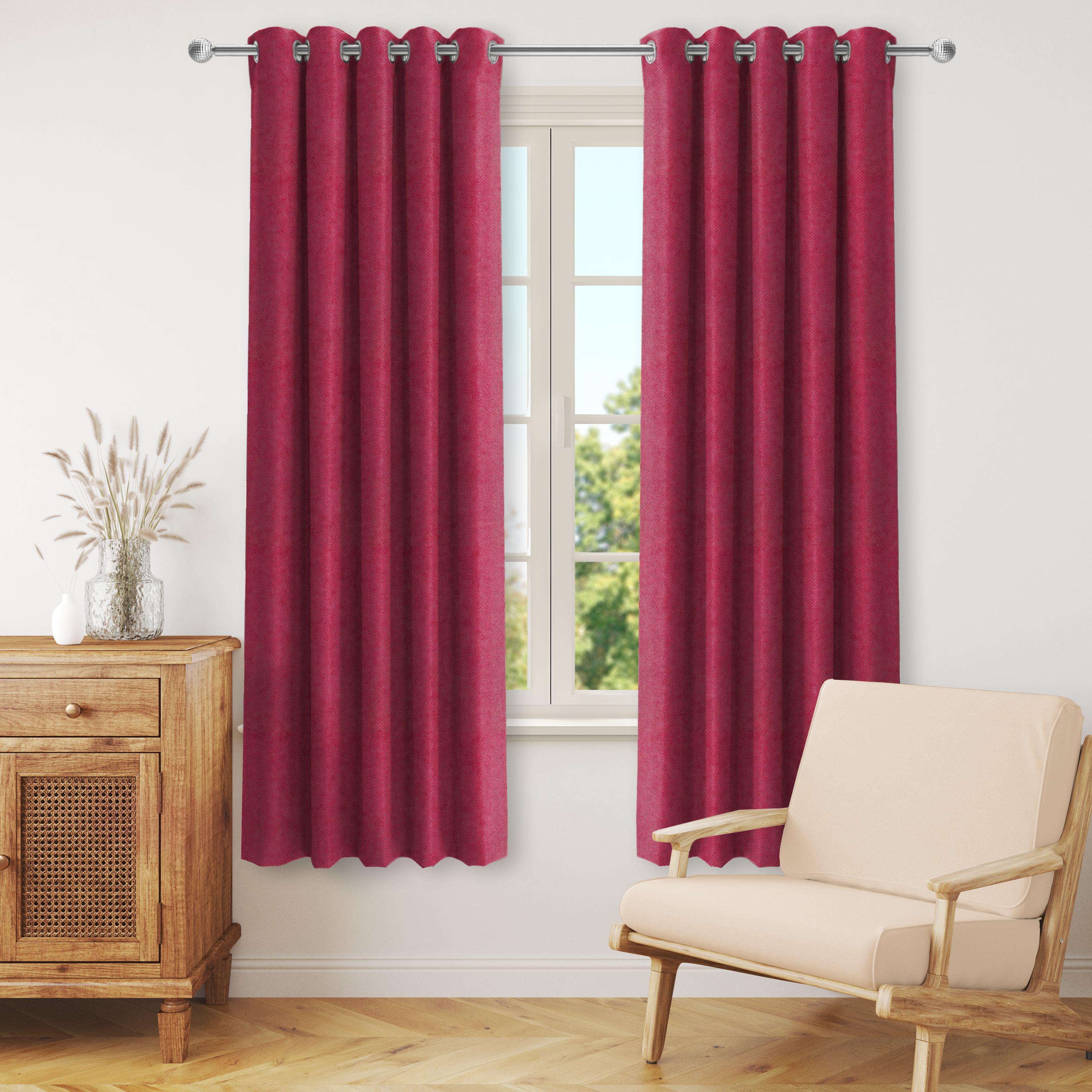 Dark Maroon Colour Textured Velvet Flock Easy Clean Readymade Curtain