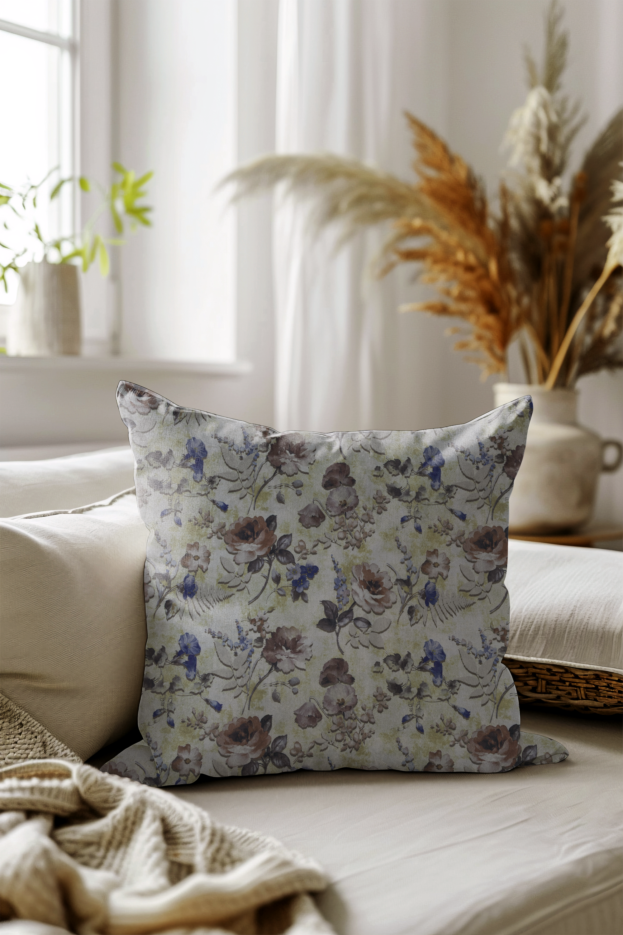 Brown and Soft Olive Colour Floral and Leaves Pattern readymade cushion cover