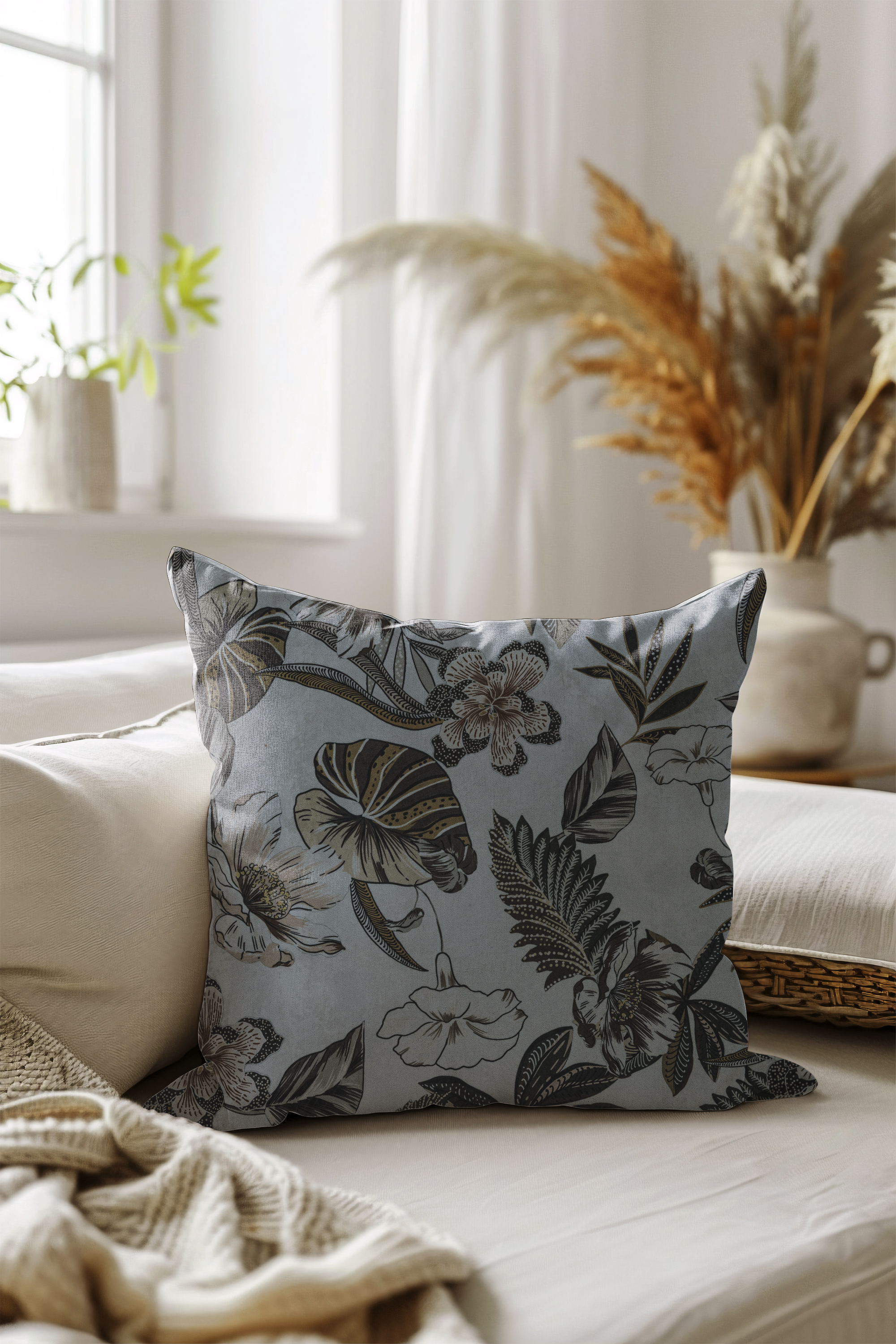 Olive Green and Mocha Brown Colour Floral and Leaves Pattern readymade cushion cover