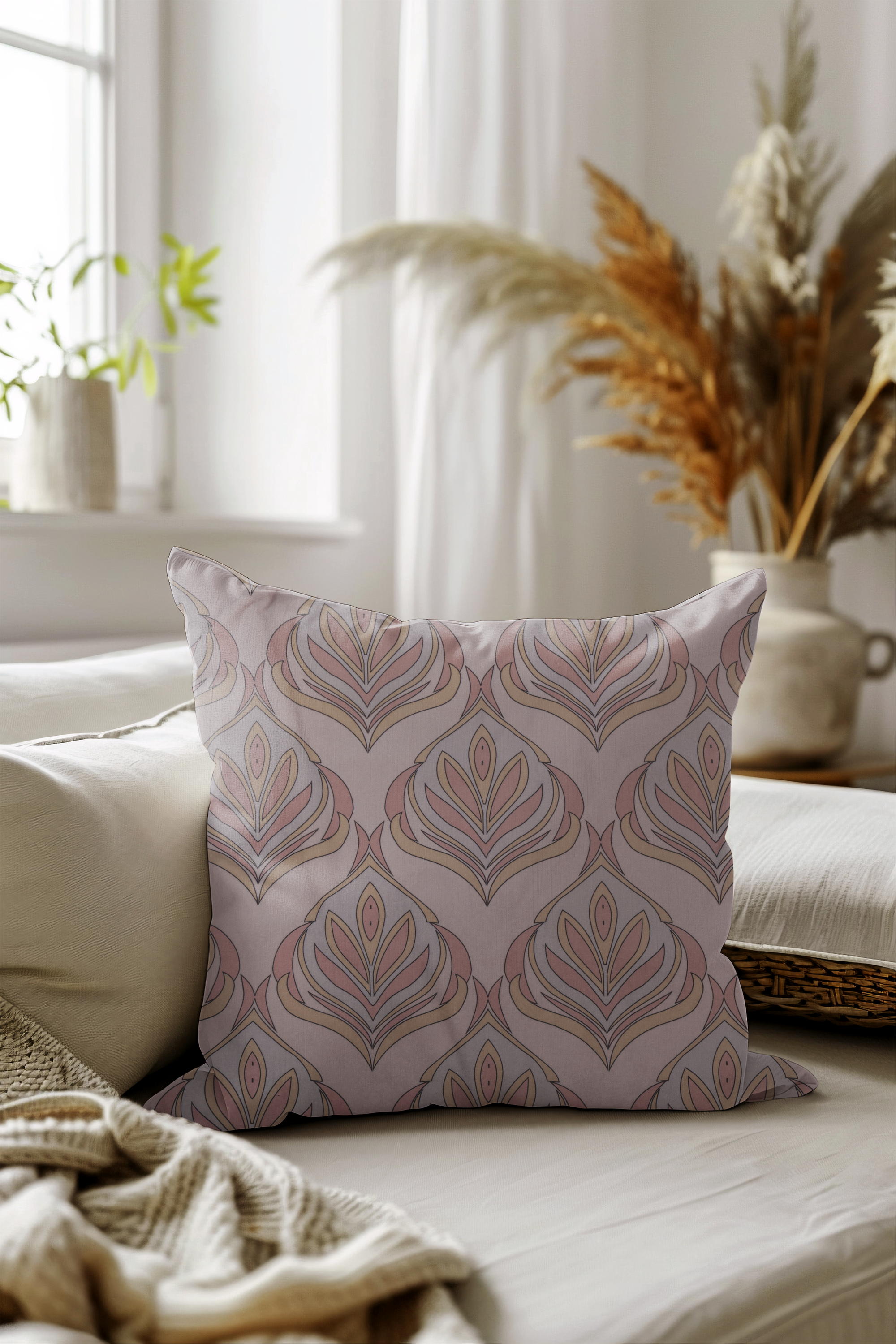 Lavender Grey and Rose Floral and Leaves Pattern Velvet readymade cushion cover