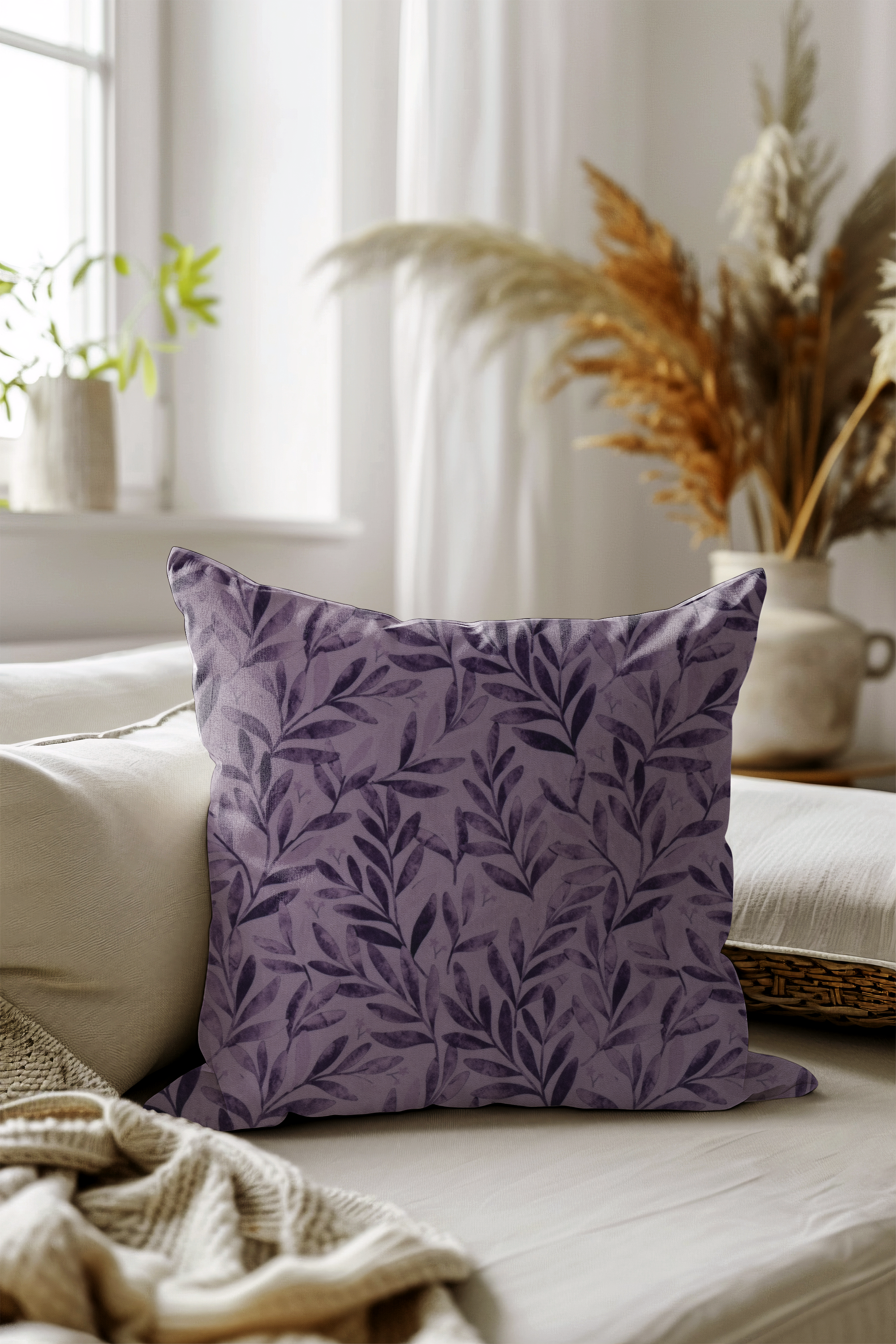 Purple Colour Leaves Pattern Velvet readymade cushion cover