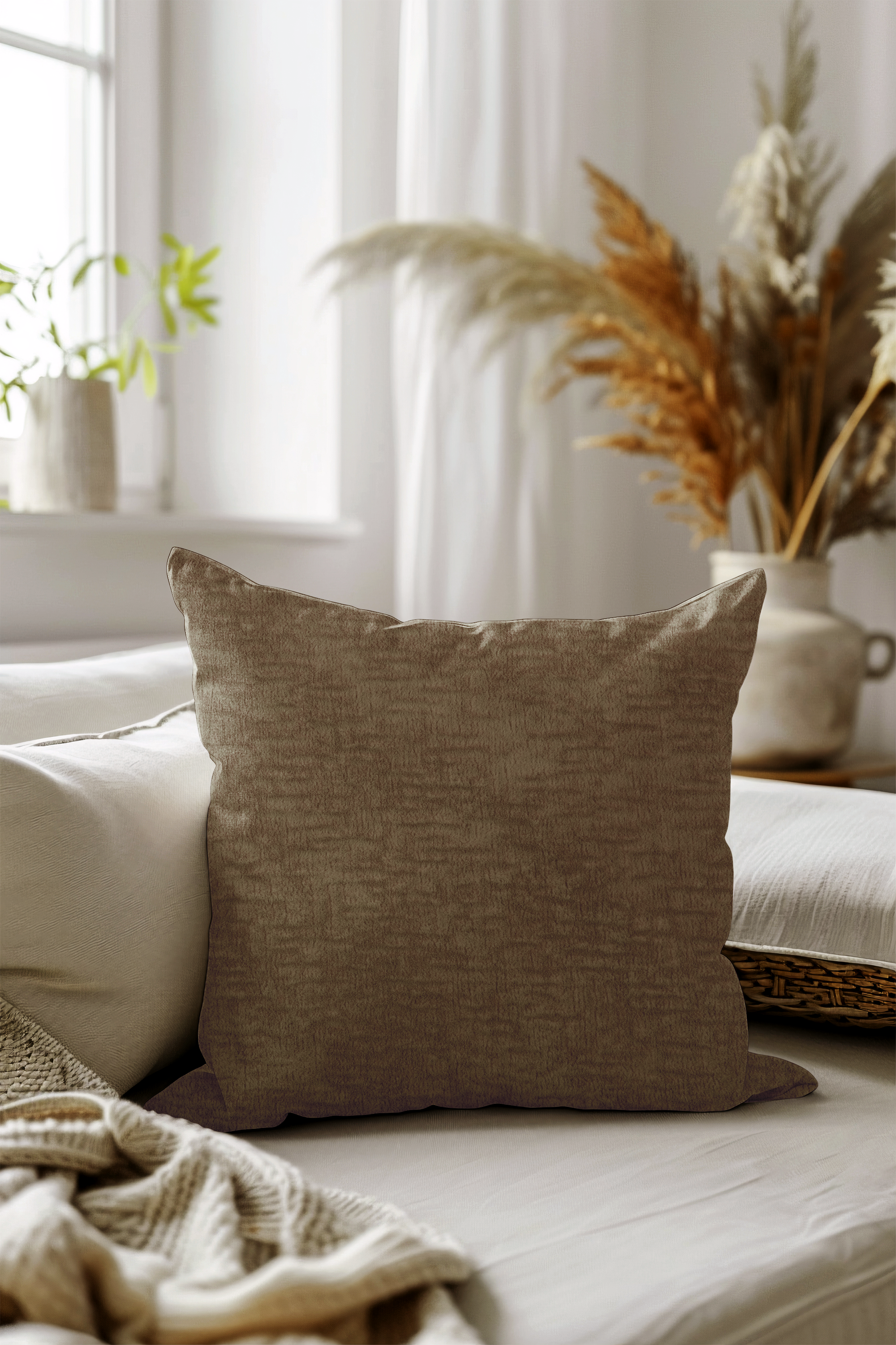 Brown Colour Textured Velvet Flock readymade cushion cover