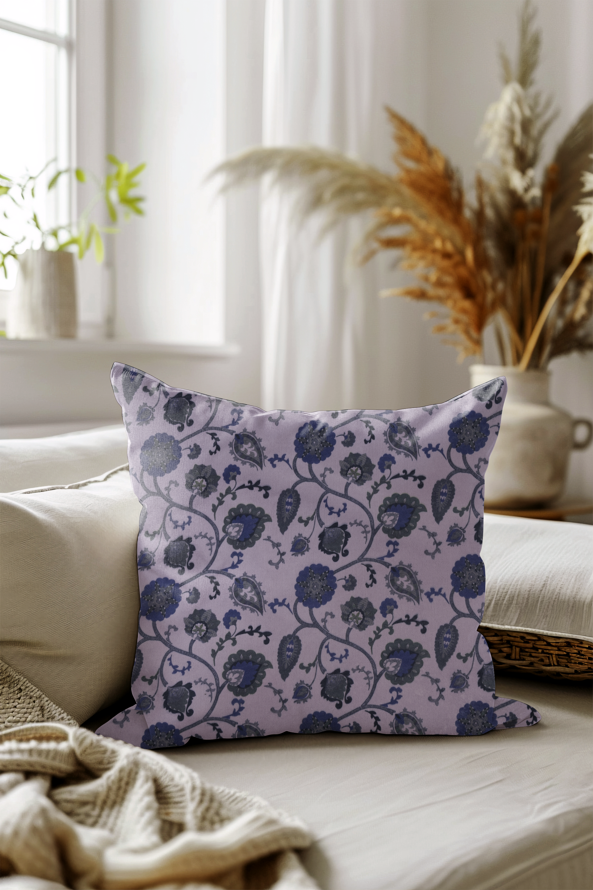 Green and Blue Floral and Leaves Pattern Velvet readymade cushion cover