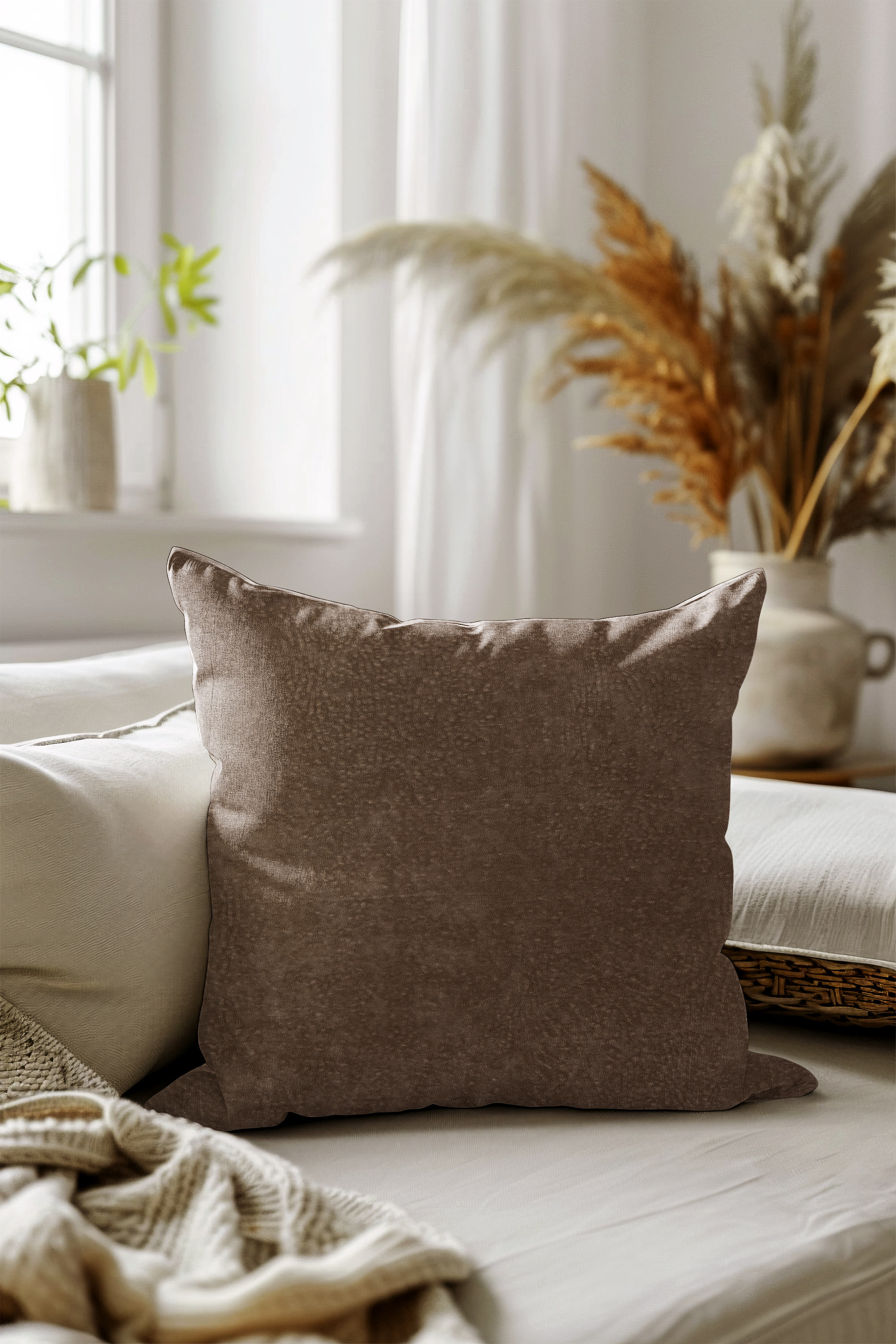 Espresso Brown Colour Textured Velvet Flock readymade cushion cover