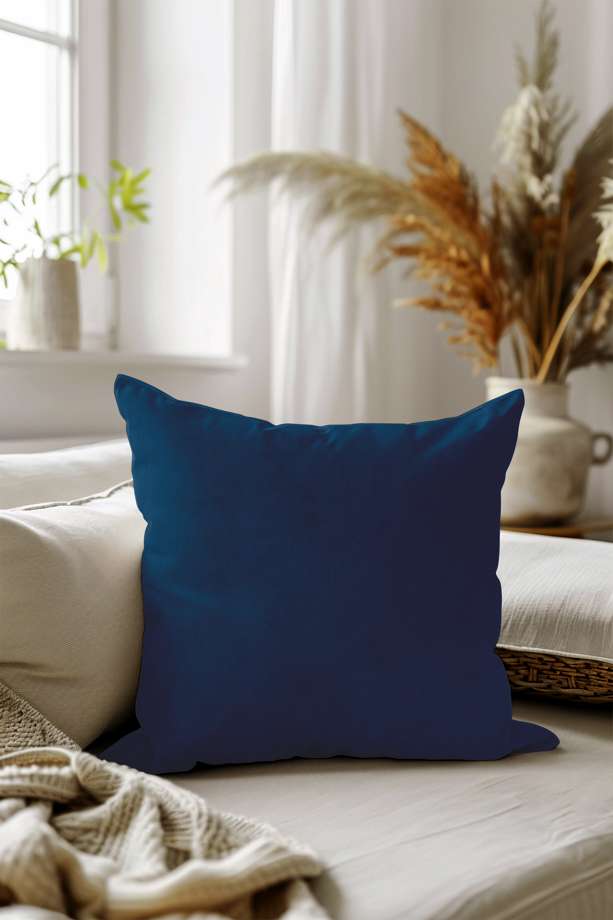 Royal Blue Colour Plain Velvet Flock readymade cushion cover