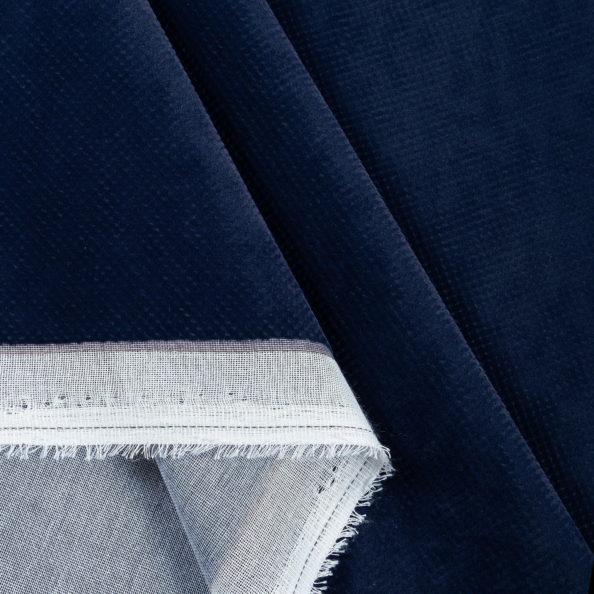Royal Navy Blue Colour Textured Velvet Flock Easy Clean Readymade Curtain