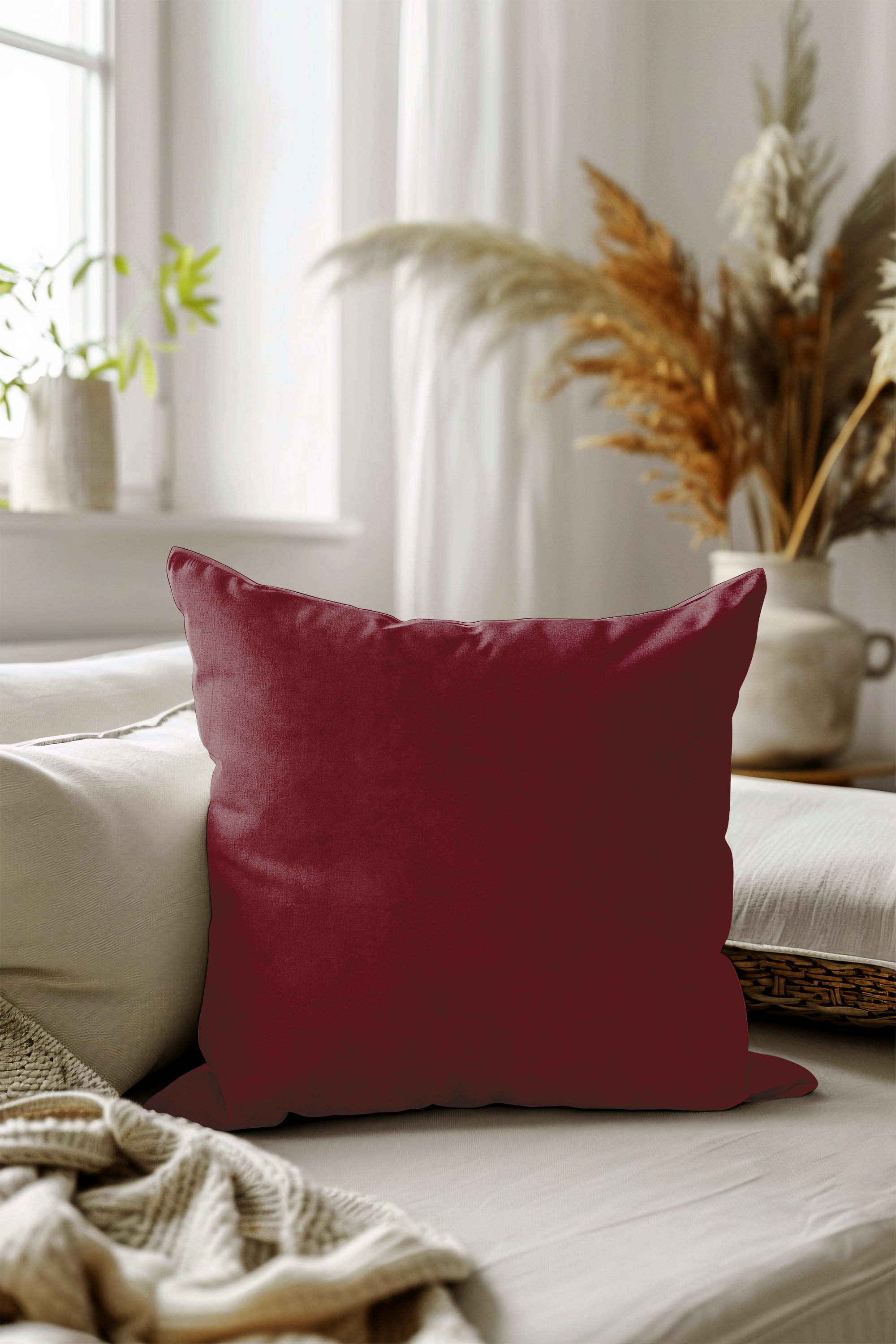 Rust Red Colour Plain Velvet Flock readymade cushion cover