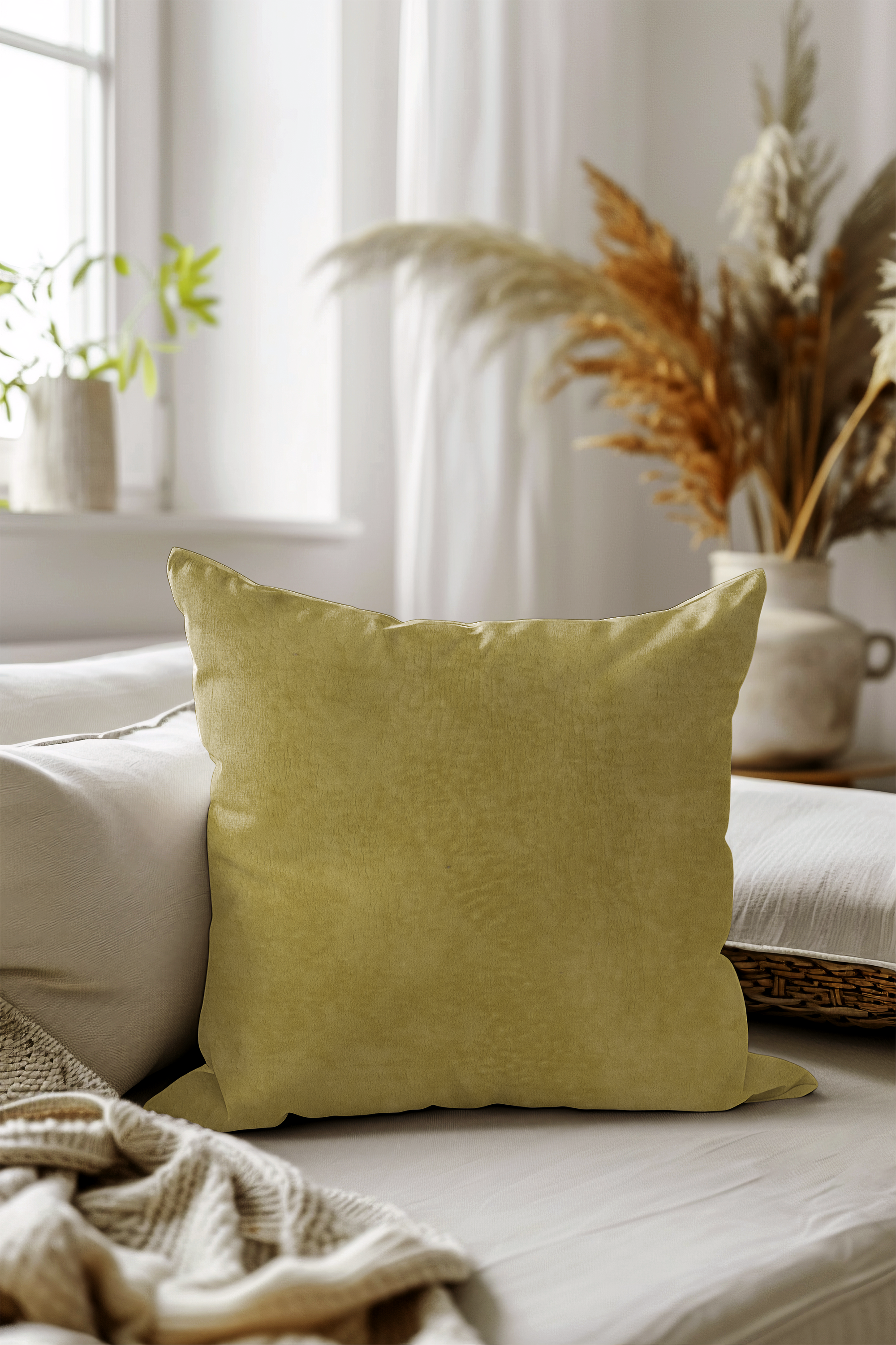 Dark Yellow Colour Textued Velvet Flock readymade cushion cover